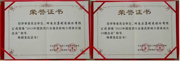 新利平台,新利(中国)荣获2013年度中国医药行业最具影响力榜单“百强企业”、“成长50强”殊荣