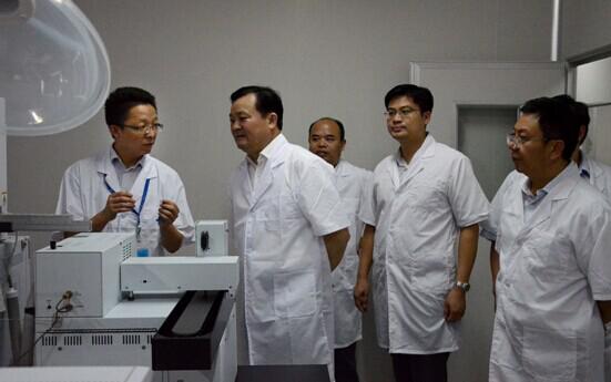 永州市委常委、常务副市长易佳良(左二)在了解公司的研发情况