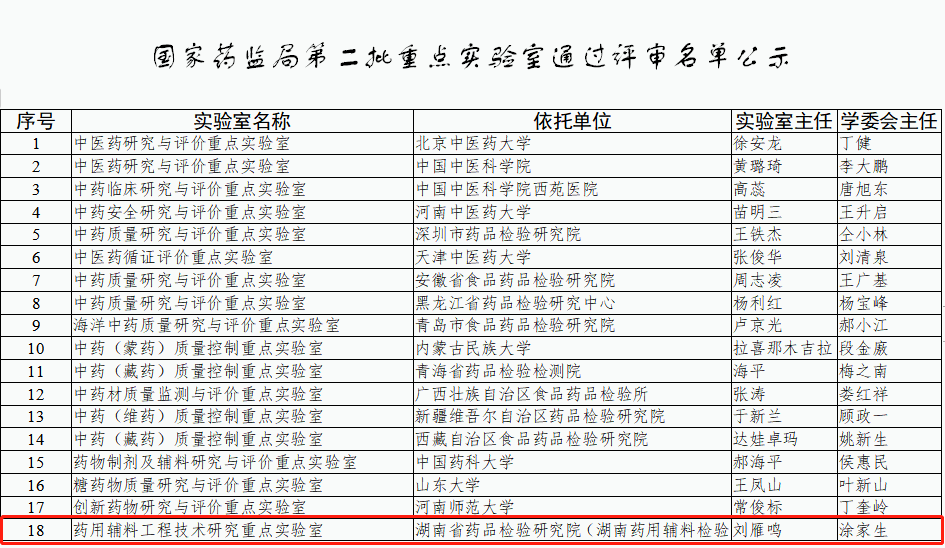 1月22日,国家药品监督管理局发布了《关于对第二批重点实验室名单进行公示的通知》,药用辅料工程技术研究重点实验室通过评审。